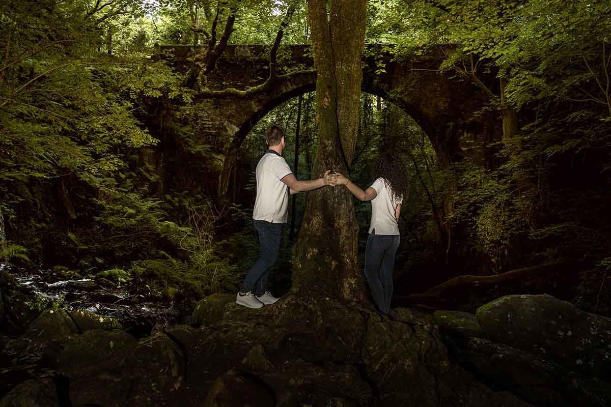 A pocas fechas de celebrar su gran día, nos metimos con Rocío y Toni en las profundidades de As Fragas do Eume, buscando un ambiente especial, unas fotos bonitas. Después de pasearnos por Mosteiro de Caaveiro, precioso y en un emplazamiento espectacular, pero algo desangelado en su interior, nos bajamos hasta el mismo río donde nos las tuvimos que ver con troncos y rocas húmedas y resbaladizas, que dificultaron nuestro trabajo, haciéndolo aún mas gratificante que de costumbre.